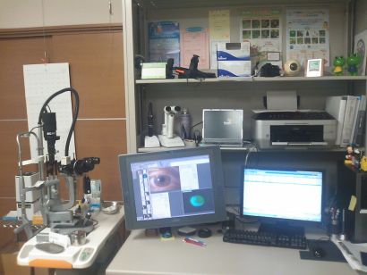 低コストでより多くの端末を利用するアイディア 電子カルテ端末が院内の各所にあると利便性が高い分、その代償としてコストもかかります。そのため、使用頻度が比較的低いクライアント端末を、リモートソフトを利用し、別拠点のパソコンから入力、閲覧を可能にし、低コストでの利便性を実現しています。(左写真は二診、処置室の使用頻度が比較的低い端末を共用している検査室のノートPC) |